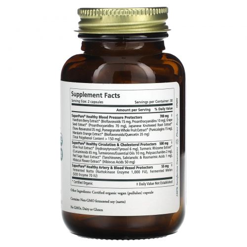 | SuperPure Health Artery & Blood Bessel Protectors Ферментированный натто (ферменты Nattokinase 1,000 FU); Ферментированная дыня (SOD Enzyme 70 IU) | 55 мг | ‡ |