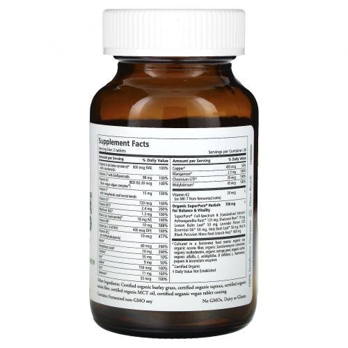 Позаботьтесь о своем здоровье с помощью всех незаменимых витаминов, основных минералов, а также сочетания сертифицированных органических трав SuperPure®, которые приведут в гармонию ваши гормоны, поддержат эмоциональное и психическое благополучие и помогут сбалансировать ежедневный стресс. Содержит наши органические, ферментированные и активированные питательные вещества, которые обеспечивают глубокое ежедневное питание и повышают вашу жизненную силу.