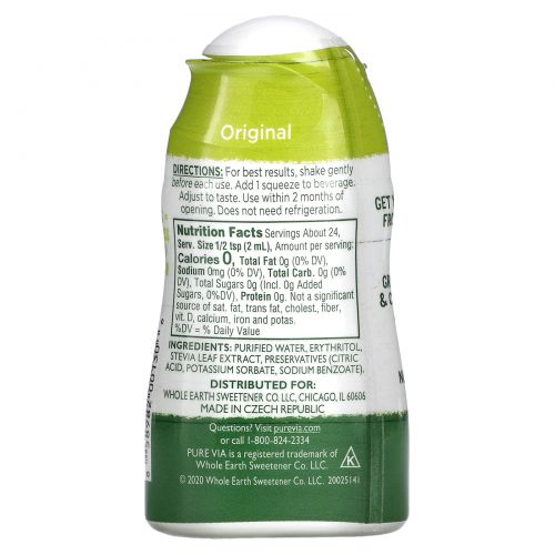 Описание товара Pure Via, Жидкий подсластитель на основе стевии, оригинальный, 48 мл (1,62 жидк. Унции)