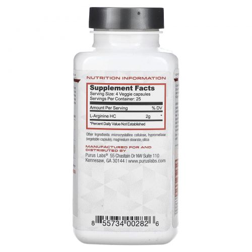 Purus Labs, Foundation Series, L-аргинин, 100 растительных капсул