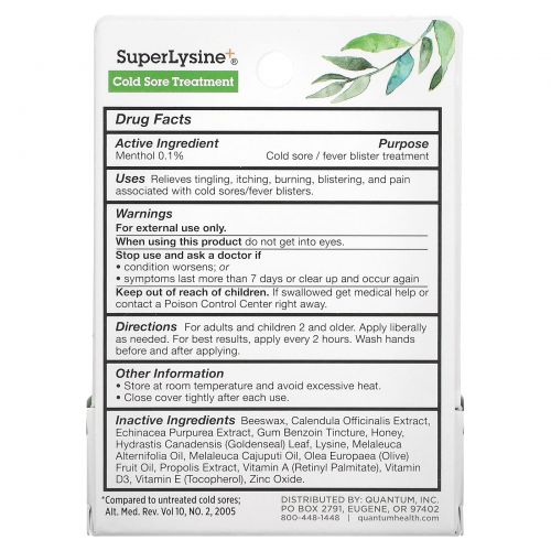 Описание товара Quantum Health, Супер лизин +, лечение герпеса, 0,25 унции (7 г)