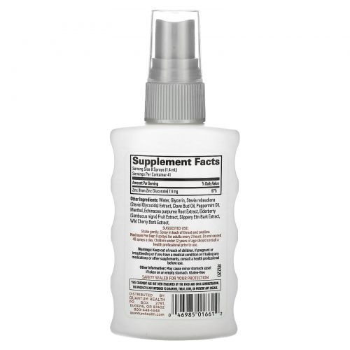 Описание товара Quantum Health, TheraZinc, спрей для иммунной поддержки горла, перечная мята, 59 мл (2 жидк. Унции)