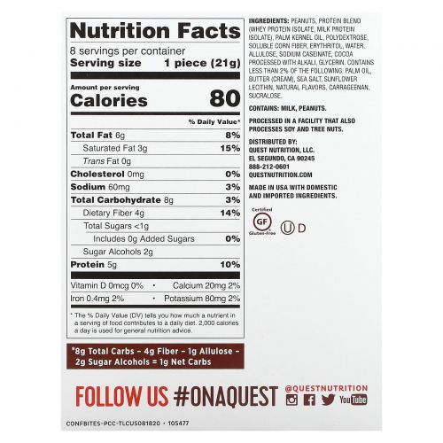 Описание товара Quest Nutrition, Candy Bites, липкая карамель с арахисом, 8 порций, 21 г (0,74 унции)