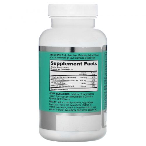 Описание товара Qunol, Кальций + магний + цинк, 180 таблеток