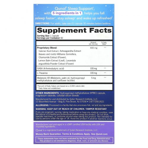 Описание товара Qunol, Поддержка сна`` 60 капсул