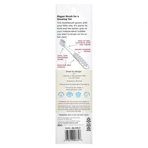 Описание товара RADIUS, Totz Plus, зубная щетка, для детей от 3 лет, экстрамягкая, синяя, 1 шт.
