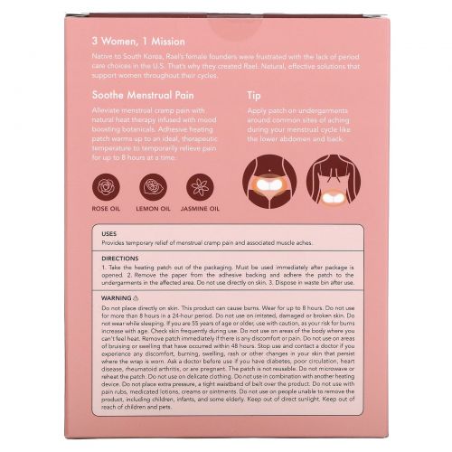 Описание товара Rael, Inc., Согревающие пластыри при менструальных спазмах, 3 шт.