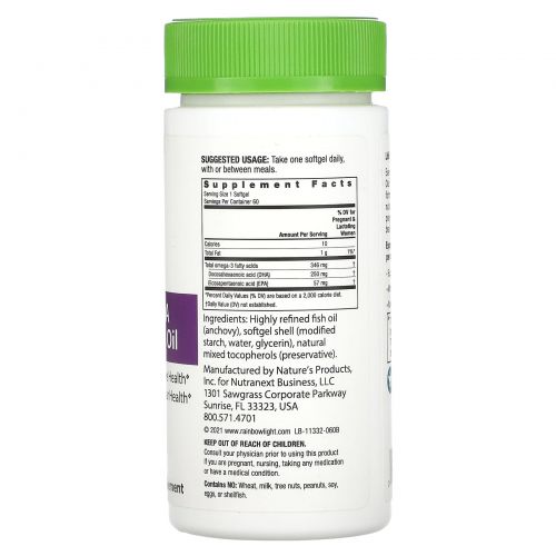 Описание товара Rainbow Light, Just Once, Супер чистая пренатальная докозагексаеновая кислота, Smart Essentials, 60 мягких таблеток