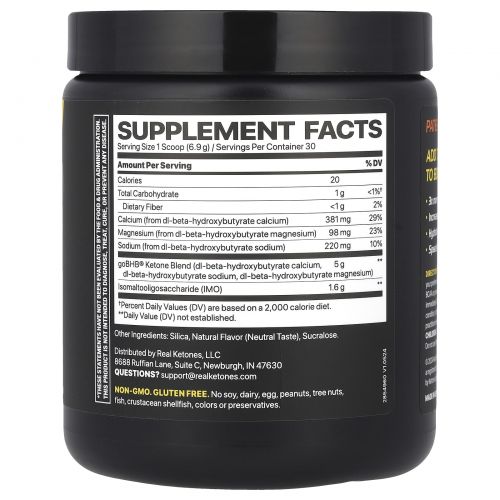 Описание товара Real Ketones, Elevate BHB 5000, нейтральный, 207 г (7,3 унции)