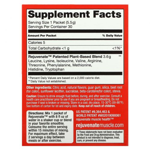 Описание товара Rejuvenate, Clinically Proven Muscle Health, Fruit Punch, 30 Pouches, 0.19 oz (5.5 g) Each