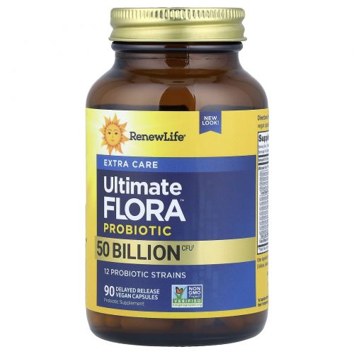 Описание товара Renew Life, Ultimate Flora, пробиотик с повышенной силой действия, 50 млрд живых культур, 90 вегетарианских капсул