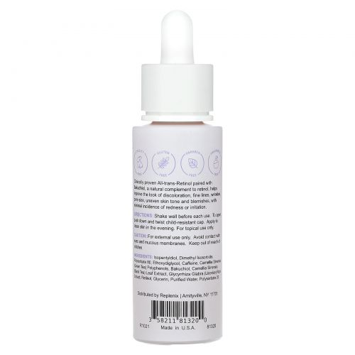 Описание товара Replenix, антивозрастная концентрированная сыворотка с ретинолом и бакучиолом, 30 мл (1 жидк. унция)