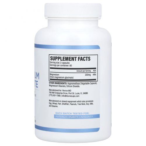 Описание товара Revive, глицинат магния, 120 вегетарианских капсул