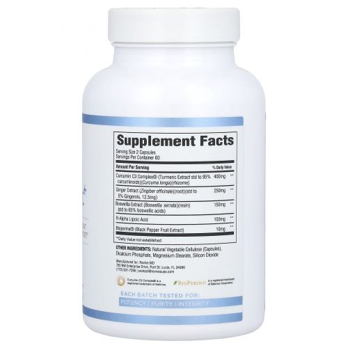 | Curcumin C3 Complex® (экстракт куркумы, стандартизированный до 95% куркуминоидов)(Curcuma longa) (корневище) | 400 мг | ** |