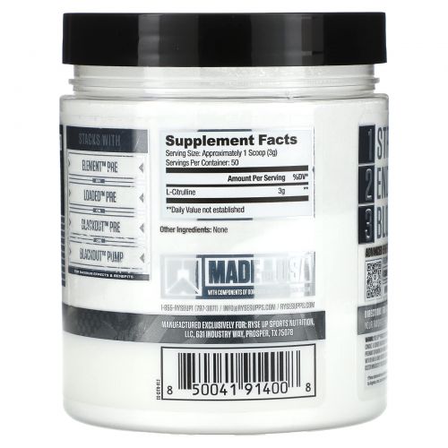 Представляем вам новейшую добавку из одного ингредиента в серию RYSE Element - чистый L-цитруллин. L-цитруллин - это заменимая аминокислота, обычно содержащаяся в таких продуктах, как арбуз. L-цитруллин обладает свойствами повышать уровень оксида азота, что делает его основным продуктом для приема в состав большинства предтренировочных добавок.