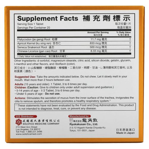 Описание товара Ryukakusan, Direct, с манго, 20 пастилок