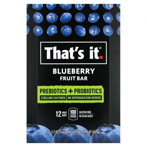 Описание товара That's It, фруктовый батончик с пребиотиками и пробиотиками, голубика, 12 батончиков по 35 г (1,2 унции)