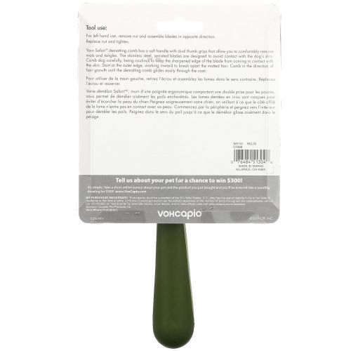 Расческа для удаления матов Safari® имеет мягкую ручку с двумя ручками для большого пальца, которые позволяют удобно удалять коврики и спутывания. Зазубренные лезвия из нержавеющей стали предназначены для предотвращения контакта с кожей собаки.