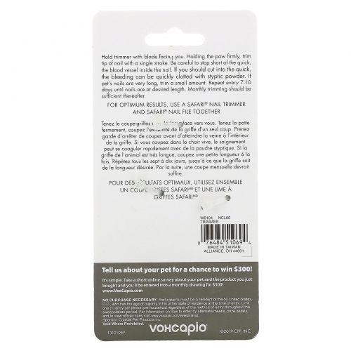 Описание товара Safari, Stainless Steel Nail Trimmer, Small Dogs, W6104, 1 Tool