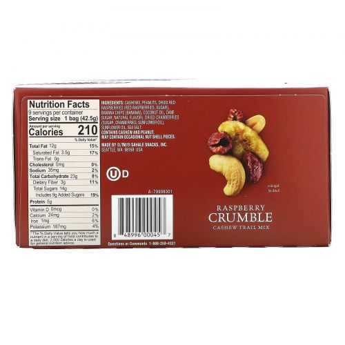 Описание товара Sahale Snacks, Смесь кешью и малиновый крамбл, 9 упаковок по 1.5 унции (42.5 г)