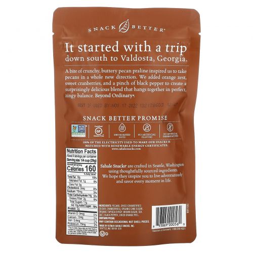 Описание товара Sahale Snacks, Snack Better, смесь глазированных орехов пекан из Валдосты, 4 унции (113 г)