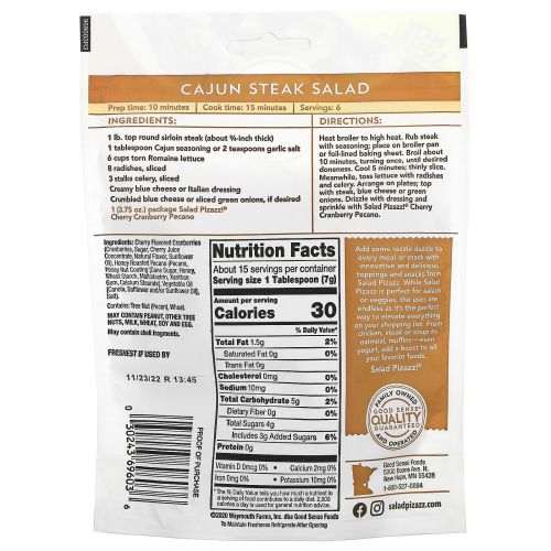 Описание товара Salad Pizazz!, фруктово-ореховая посыпка, клюква с вишней и пекан, 106 г (3,75 унции)