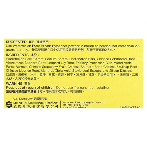 Используйте порошок освежителя дыхания «Арбузный мороз» в ротовой полости по мере необходимости, но не более 2,5 грамма в день.