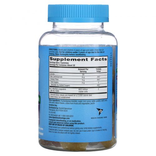 Ежедневный пробиотик и мягкая пребиотическая клетчатка для детей Digestive Advantage содержит 2 ингредиента, которые идеально подходят для улучшения здоровья пищеварительной системы! Пребиотик естественным образом работает с пробиотиками и поддерживает рост полезных бактерий. Пробиотики - это полезные бактерии, которые способствуют здоровью пищеварительной системы, помогают уменьшить дискомфорт в животе и периодическое вздутие живота. Ежедневный пробиотик Digestive Advantage с мягкой пребиотической клетчаткой идеально подходит для долгосрочной поддержки пищеварения.