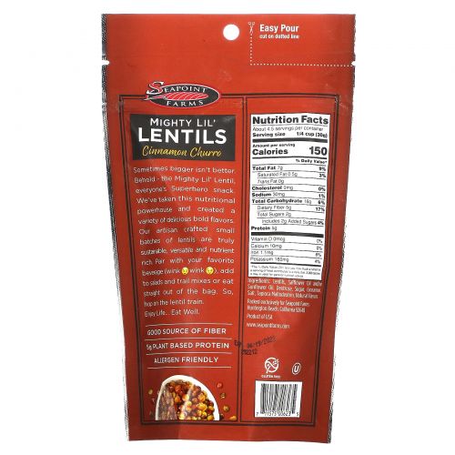 Описание товара Seapoint Farms, Mighty Lil' Lentils, Cinnamon Sugar, 5 oz (142 g)