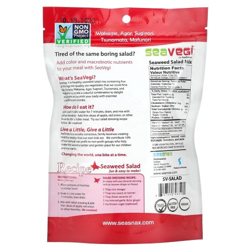 Описание товара SeaSnax, SeaVegi, салатная смесь из морских водорослей, 0,9 унции (25 г)