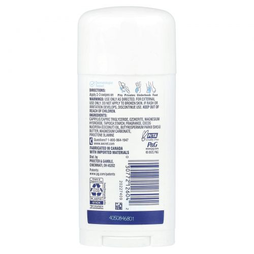 Описание товара Secret, Дезодорант для всего тела, сухое твердое вещество без алюминия, свежая сирень + кувшинка, 68 г (2,4 унции)