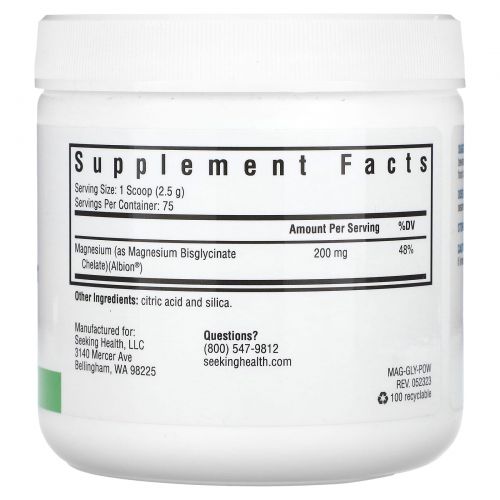 Описание товара Seeking Health, глицинат магния в порошке, 200 мг, 187,5 г (6,61 унции)