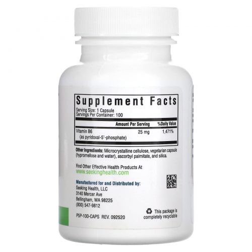 Описание товара Seeking Health, P-5-P, 25 мг, 100 вегетарианских капсул