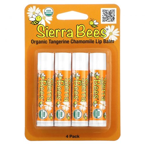 Описание товара Sierra Bees, Органические бальзамы для губ, мандарин и ромашка, 4 шт. в упаковке, 0,15 унции (4,25 г) каждый