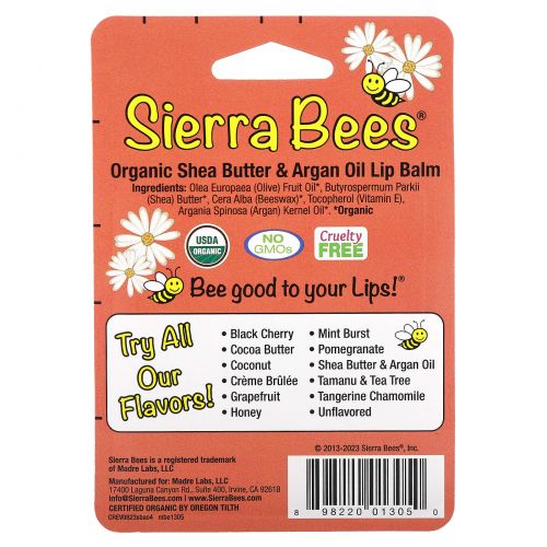Описание товара Sierra Bees, Органические бальзамы для губ, масло ши и аргановое масло, 4 штуки в упаковке весом 0,15 унции (4,25 г) каждая