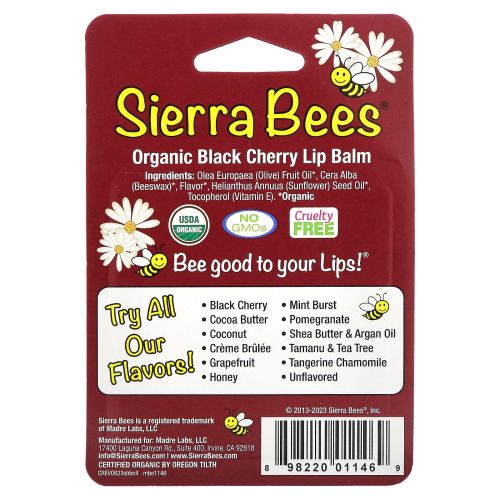 - Sierra Bees Органические бальзамы для губ с запахом черешни