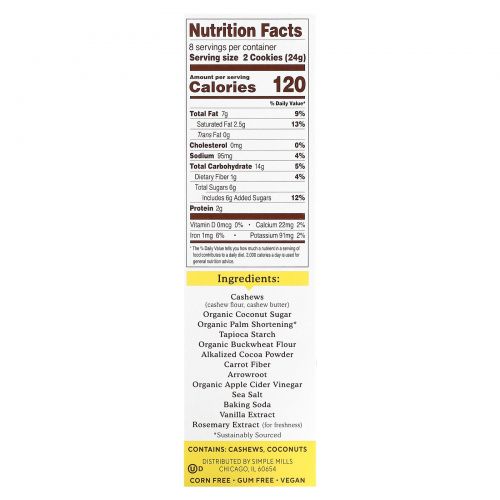 Описание товара Simple Mills, Сэндвич-печенье, фаршированное ореховым маслом, крем с какао и кешью, 190 г (6,7 унции)