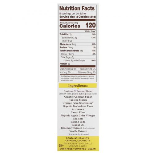 Описание товара Simple Mills, Сэндвич-печенье, фаршированное ореховым маслом, сливочное арахисовое масло, 190 г (6,7 унции)