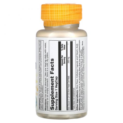 Описание товара Solaray, Бета-глюкан, высокая эффективность, 200 мг, 30 растительных капсул