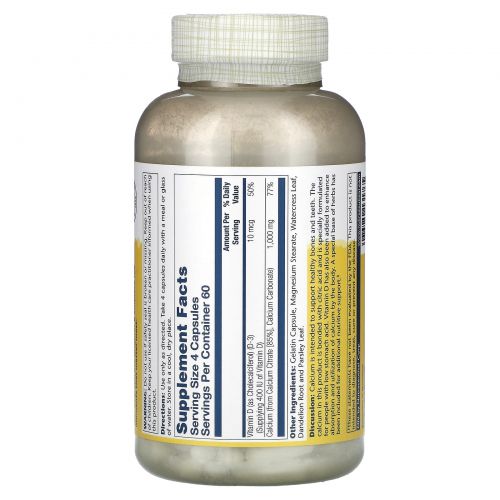 Описание товара Solaray, Цитрат кальция с витамином D-3, 240 капсул