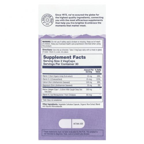Исследования показывают, что с возрастом наши кости могут терять до 50% своей прочности в результате потери коллагена. Solaray Collagen Bone Complete, разработанный для улучшенной поддержки костного матрикса, содержит гидролизованный коллаген, необходимые растительные минералы, такие как магний и кальций, витамины K-2, D-3 и C.