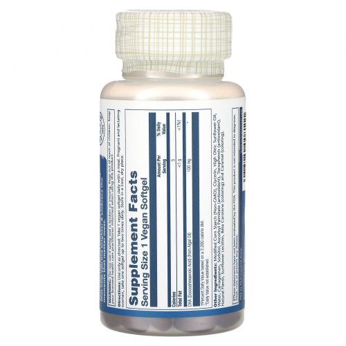Описание товара Solaray, DHA, Plant Sourced, 100 mg, 60 Vegan Softgels