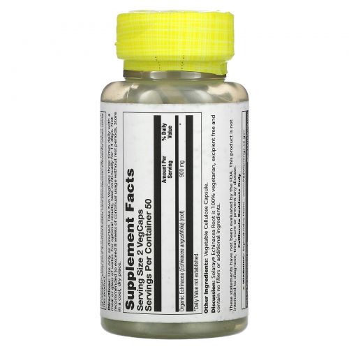 Описание товара Solaray, Эхинацея, выращиваемая с использованием органических методик, 450 мг, 100 капсул с оболочкой из ингредиентов растительного происхождения