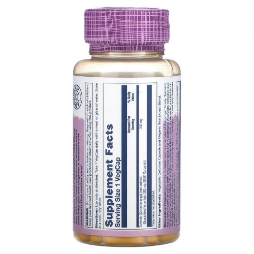 Описание товара Solaray, Экстракт из корня куркумы, 300 мг, 60 вегетарианских капсул