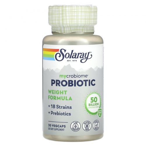 Описание товара Solaray, Mycrobiome Probiotic Weight Formula, 50 Billion, 30 Enteric VegCaps