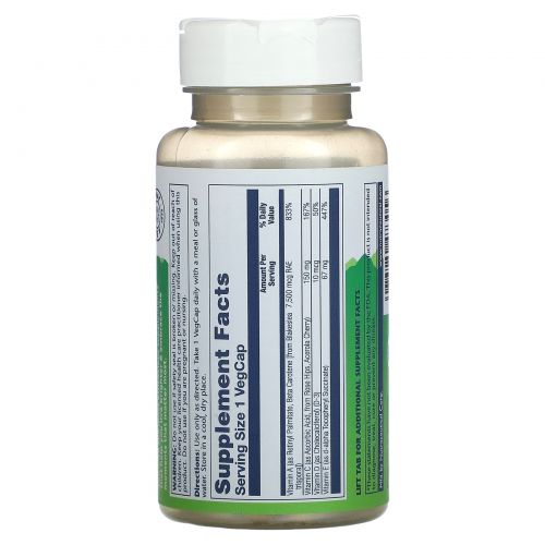 | Vitamin A (as Beta Carotene, Retinyl Palmitate) (Supplying 25,000 IU of Vitamin A) | 7,500 mcg | 833% |