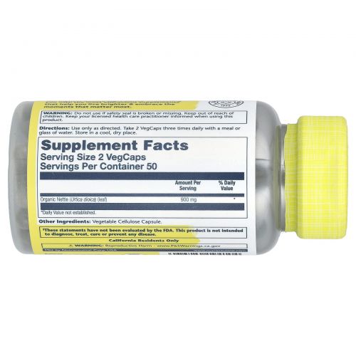 Описание товара Solaray, Органически выращенная крапива, 450 мг, 100 капсул с оболочкой из ингредиентов растительного происхождения