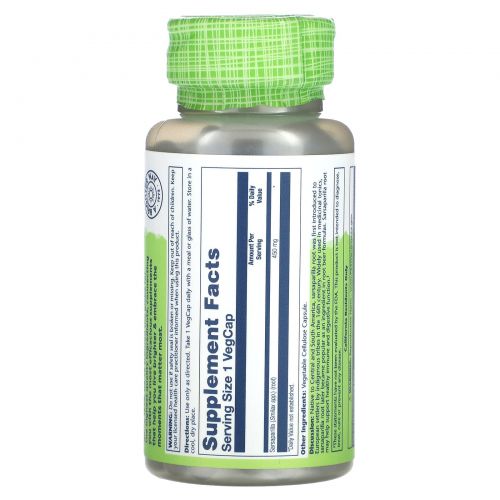 Описание товара Solaray, True Herbs, сарсапариль, 450 мг, 100 вегетарианских капсул