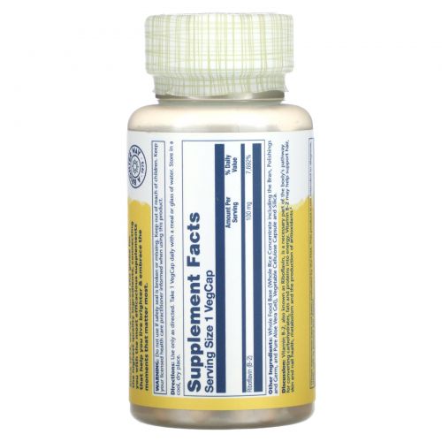Описание товара Solaray, Витамин B2, 100 мг, 100 VEGCAPS
