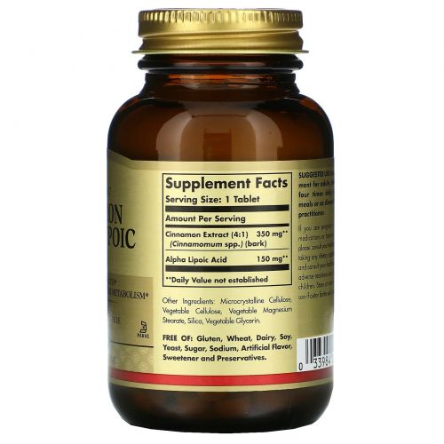 Описание товара Solgar, Альфа-липоевая кислота с корицей, 60 таблеток